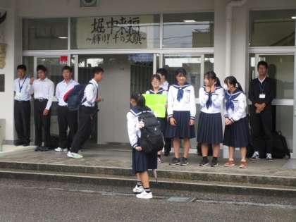 今朝は、前期生徒会最後の活動として、各学級の規律委員全員が生徒玄関で、挨拶の声掛けを行いました。とても活気あふれる元気な声が響き渡りました。