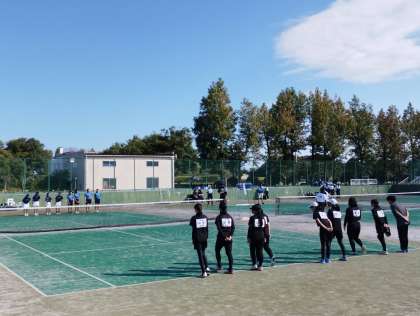 いよいよ、ソフトテニス団体戦 第一試合、対山室戦が始まります。