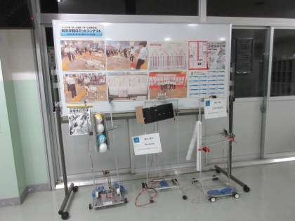 10月28日(月)生徒玄関に、第21回富山県中学校ロボットコンテストで健闘した3機体を、展示しました。