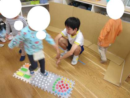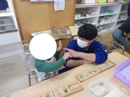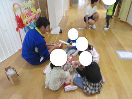 夏季休業中に作成した手作りおもちゃを持参し、保育園の5つの教室では、3〜4名の園児に対して生徒1名が担当し、1時間の「保育ふれあい体験」を実施しました。