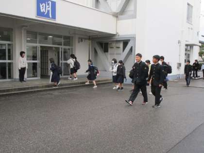 今朝は、昨日に比べて一段と冷え込みました。防寒着を着る生徒もかなり増えたようです。