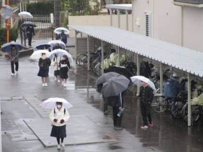 今日も冷たい雨が降っている中での登校となりました。傘を差しての通行のため、視界が狭くなりがちになります。周囲の安全に十分気を付けて登下校しましょう。