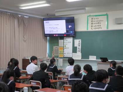 生徒集会の後、執行部が中心となり、「特別先生クイズ」「謎解き」が行われました。各学級では、モニターを見ながら、和やかに考える姿が印象的でした。