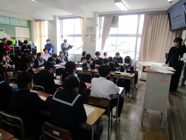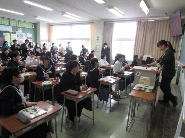 5限に道徳の公開授業を行い、各学年の教員が参観しました。生徒たちも熱心に授業に取り組んでいました。