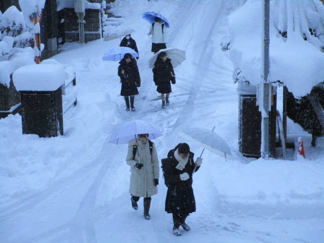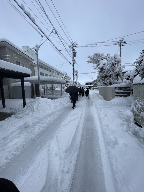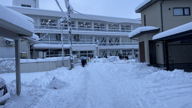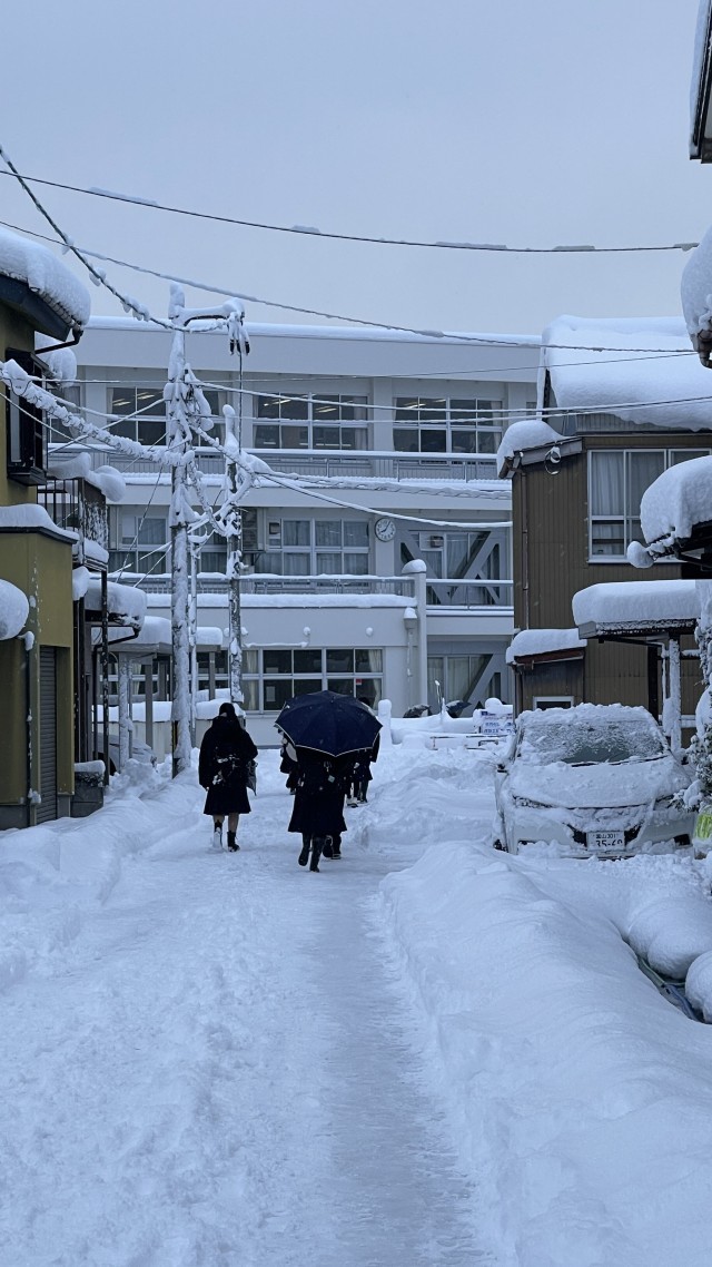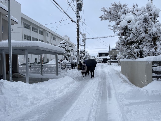 2月5日(水) 登校の様子 公開日 2025/02/05 更新日 2025/02/05 そ の 他 昨晩からの雪で、50㎝ほどの積雪となりました。交通機関の関係で登校が遅れる生徒もいることから、1限開始を10分繰り下げ、1・2限は45分授業で行います。 本日は、雪、最高気温は2度、最低気温は−2度の天気予報です。(学校周辺の写真を追加しました。) +7