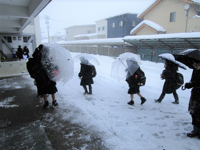 今朝は9時10分までの登校となっていますが、少しずつ生徒が登校しています。