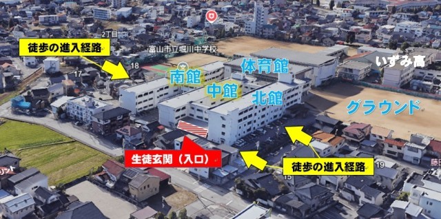 ■ 生徒玄関(校舎東側)からお入りください。(添付画像参照)