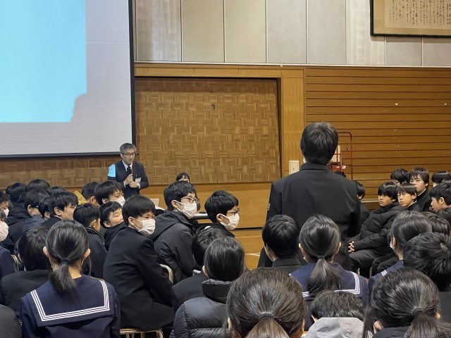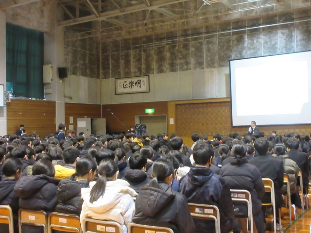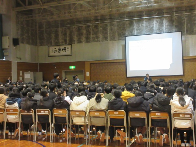 生徒たちは、自分を含めた子どもが心身ともに健康に育ち、自分らしく生きるために必要な『子どもの権利』について話を聞きました。「子どもの権利」について真剣に考えたり、率直な感想や意見を述べる姿を見ることができました。