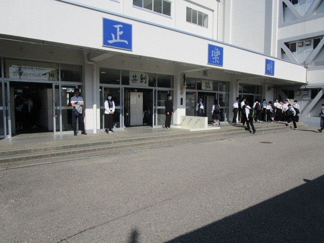 青空が広がる気持ちのよい朝になりました。生徒たちの姿も、すでに冬服は少なくなり、暦の上での夏が感じられる時期です。