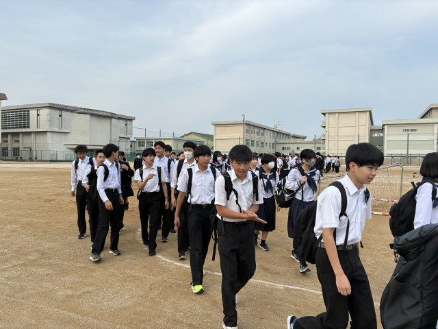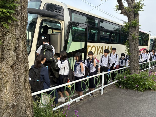 いよいよ修学旅行に出発です。6時30分には全員集合が完了し、クラスごとにバスに乗り込みました。京都には11時45分ごろ到着予定です。