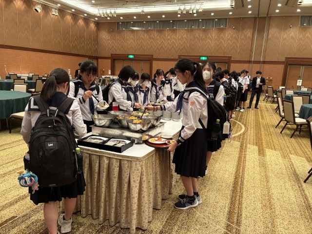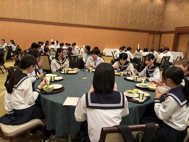 2日目スタートです。もりもり朝食を食べています。この後、広島平和記念公園へ出発します。
