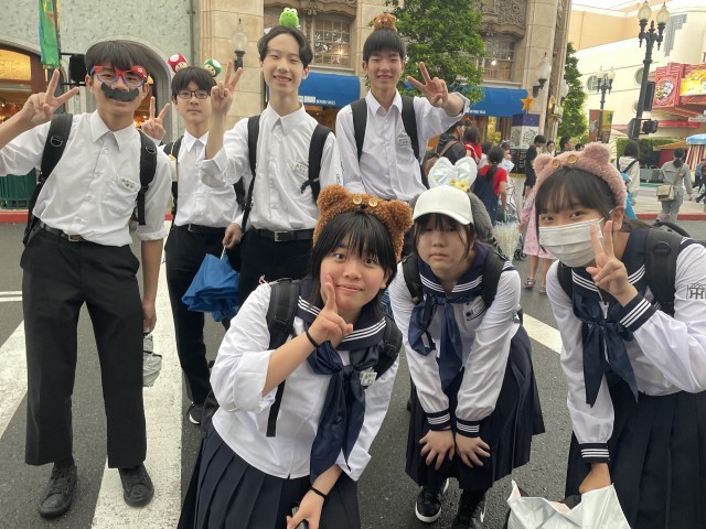 待ちに待ったUSJでの活動です。あいにくの雨ですが、思い切り楽しんでいます!
