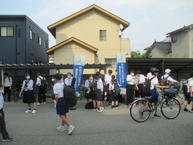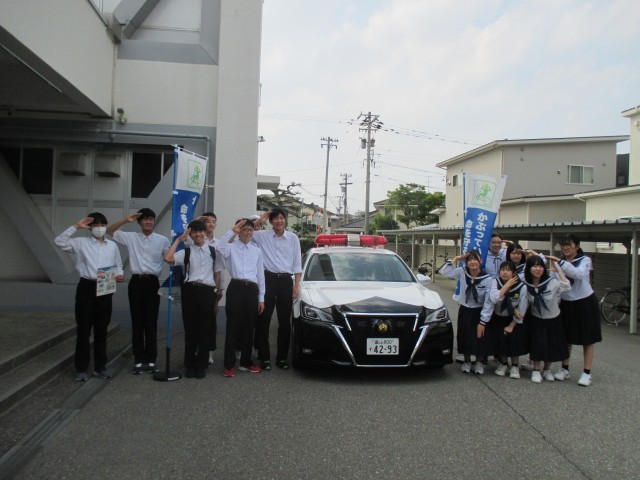 本日の下校時に、富山南署の方とともに生徒会執行部が中心となって、生徒玄関でヘルメット着用を呼びかけました。毎日しっかりヘルメットを着用し、安全に留意して登下校してくださいね。
