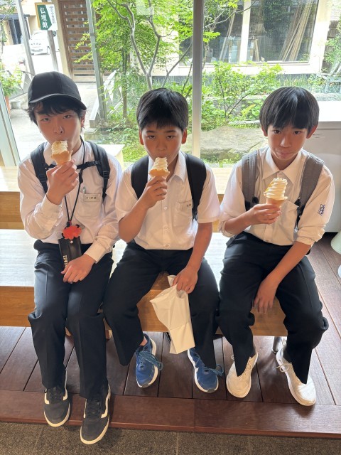 体験活動をしたり、暑いのでソフトクリームを食べたりしています。