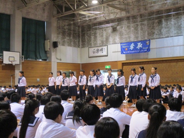 本日5限には、「富山市中学校総合選手権大会壮行会」が行われました。