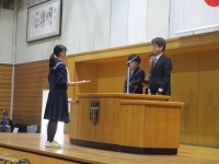 1限に行った「意見発表・受賞報告・壮行会」の様子です。 「意見発表」では、1学年...