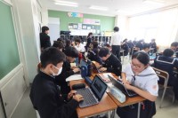 2年生2限の授業の様子です。国語の漢字の確認テストや、英語のリスニングに取り組ん...
