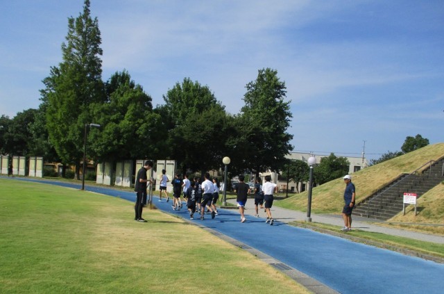 駅伝部は、今日も学校でウォーミングアップを行ってから、城東公園で練習を行いました。