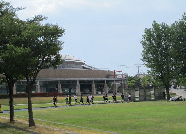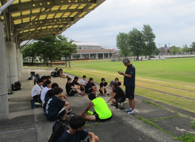 5日(火)駅伝部 活動の様子 公開日 2025/08/05 更新日 2025/08/05 部活動 駅伝部の生徒たちは、今日も学校でウォーミングアップを終えてから、城東公園で練習を行いました。陸上競技部の生徒たちも、一緒に活動を行っていました。今日は、雨上がりの曇り空で、昨日よりも比較的しのぎやすく感じました。