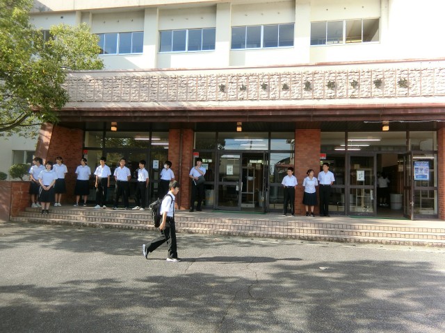 本日は、7時50分から生徒会執行部と各学年生徒会の生徒たちが挨拶運動を行いました。