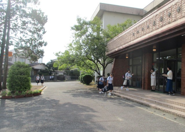 今朝も、生徒会執行部企画の「挨拶リング」で、生徒会執行部と各学年生徒会の生徒たちが挨拶運動を行っていました。