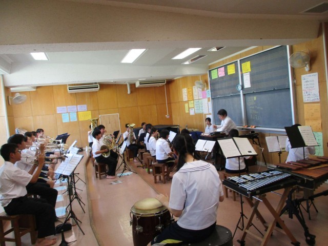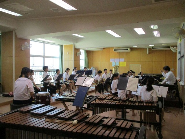今日は、熱中症対策のため、運動部の活動を中止したので、吹奏楽部のみの活動となりました。