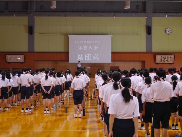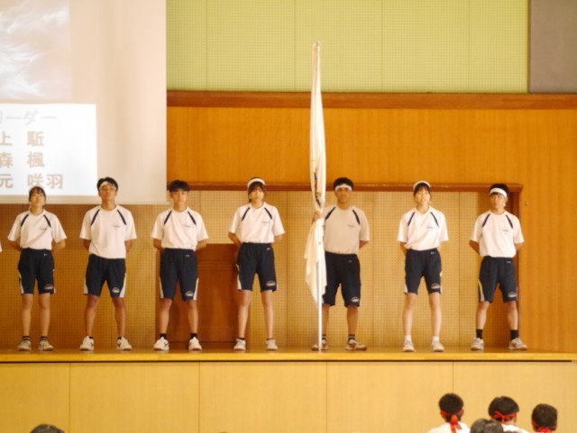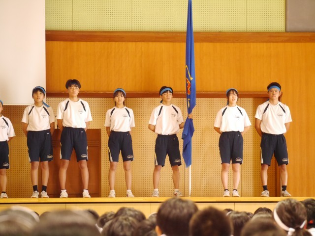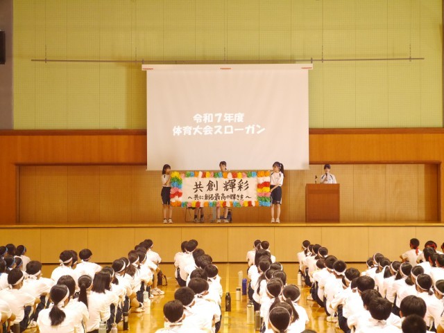 実行委員会が紹介され、体育大会のスローガンが発表されました。