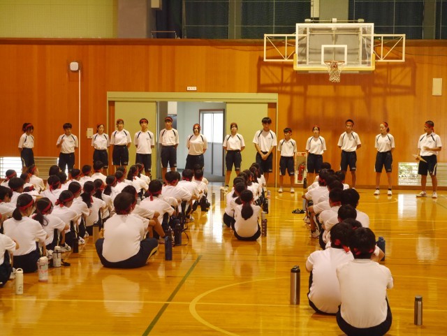 団長以外の応援リーダー全員も団生徒の前で一言ずつ決意表明しました。
