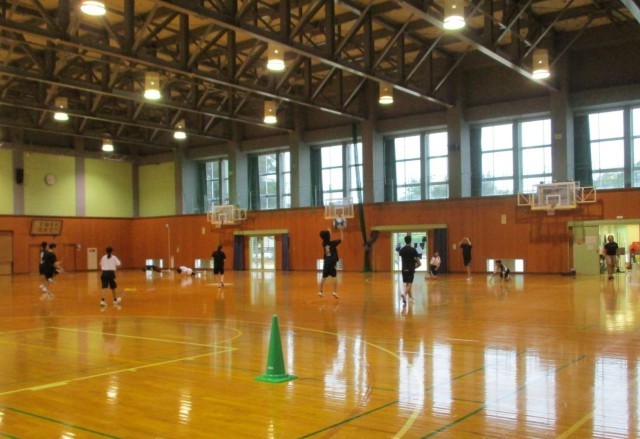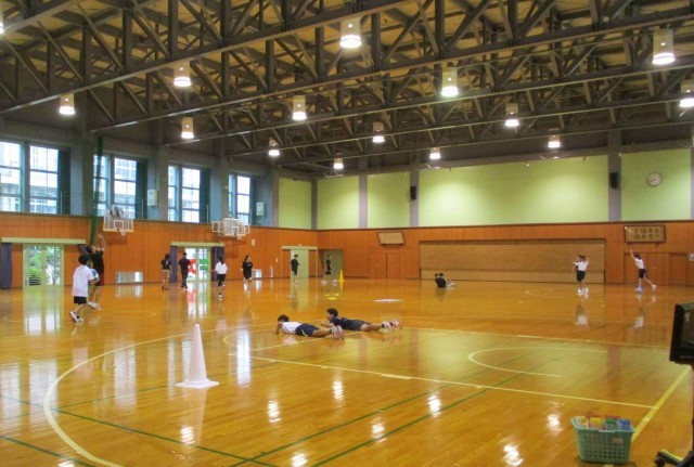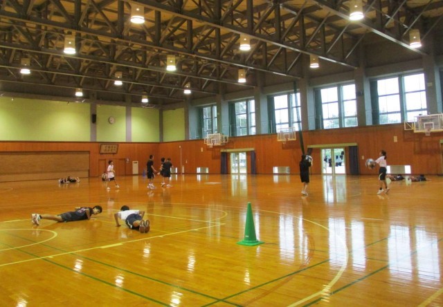駅伝部は、今朝は雨天のため、体育館でトレーニングを行いました。
