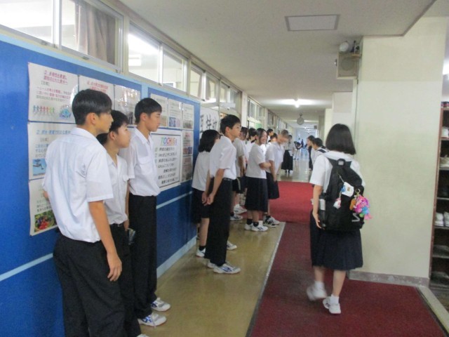 朝の生徒玄関では、生徒会執行部企画の活動である「挨拶リング」を実施しています。