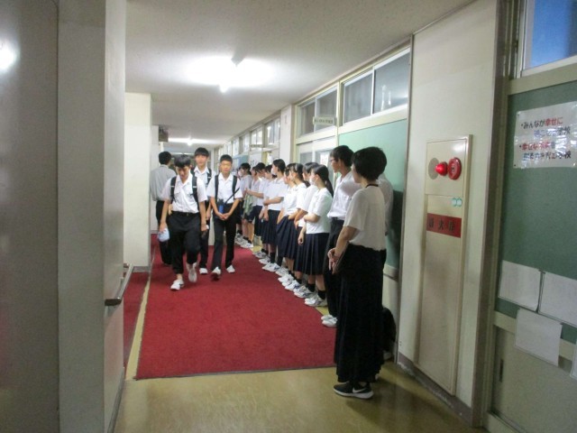 本日は、2年3組の生徒たちが挨拶運動を行っていました。