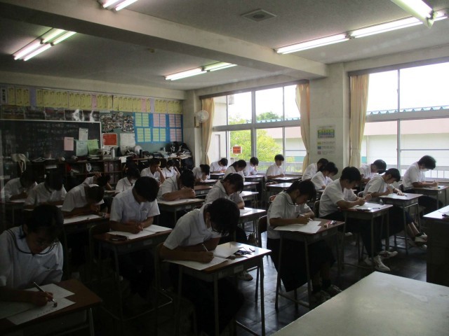 12日(金)確認テスト【3学年】 公開日 2025/09/12 更新日 2025/09/14 3学年 3年生は、1・2限に確認テストを行いました。2日目の今日は、数学・英語の2教科の問題に取り組みました。