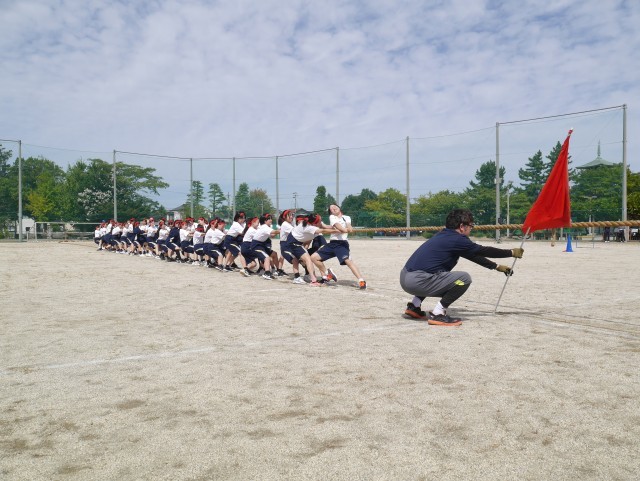 綱引きの種目練習では、実際に綱を引き、騎馬戦では騎馬を組んで歩きました。