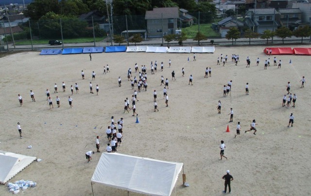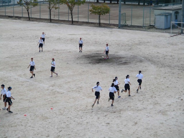 放課後に、学年別リレー、団別リレーに出場する選手たちを対象にリレー研修を行いました。