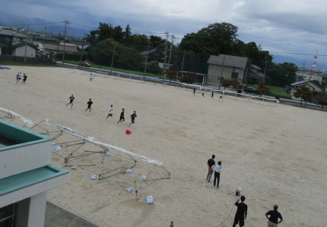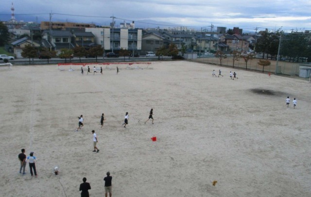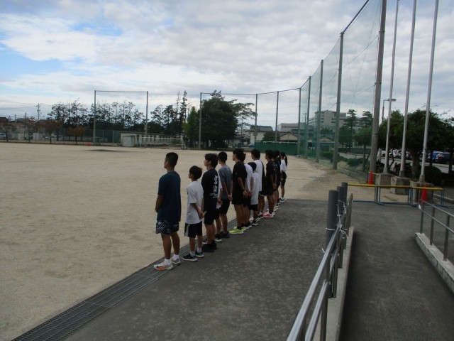 練習の終了後には、グラウンドに向かって全員で挨拶をしています。