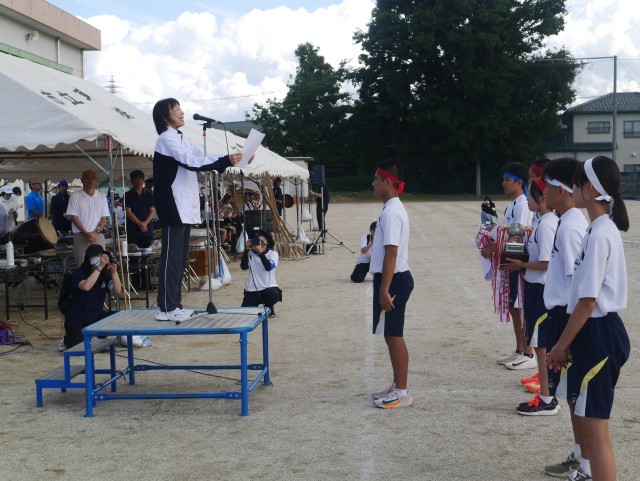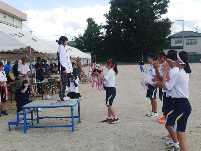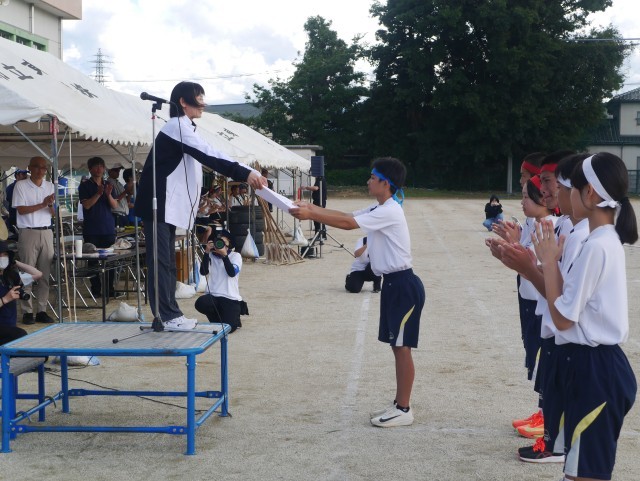 26日(金)第79回体育大会【閉会式 その1】 公開日 2025/09/26 更新日 2025/09/26 体育大会 【写真1:結果発表】【写真2:結果発表】【写真3:応援優勝(朱雀団)】【写真4:応援次賞(青龍団)】【写真5:総合優勝(白虎団)】【写真6:総合次賞(朱雀団)】 +3
