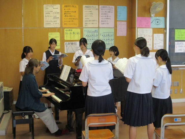 3年生は、昨年度に引き続き、音楽の授業の時間に、教育活動サポーターの先生から合唱の指導を受けています。
