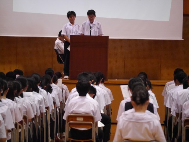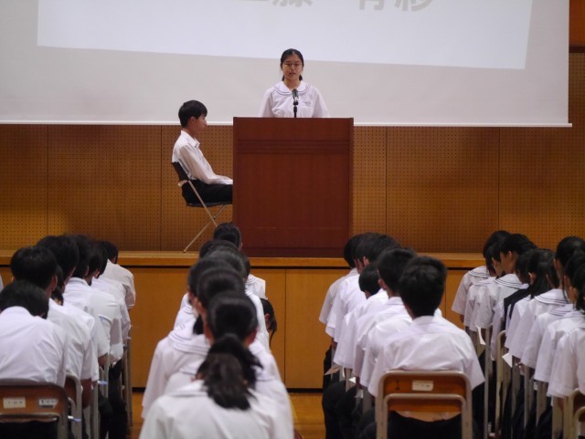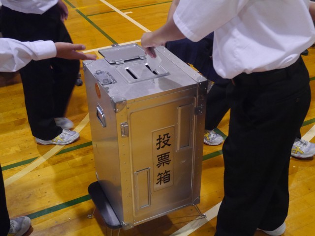 1日(水)後期生徒会役員選挙立会演説会・投票 公開日 2025/10/01 更新日 2025/10/01 生徒会 立会演説会では、立候補者全員が自分の公約や思いを堂々と発表しました。投票では、実際の選挙に使われる選挙記載台と投票箱を使用し、投票を行いました。 +2