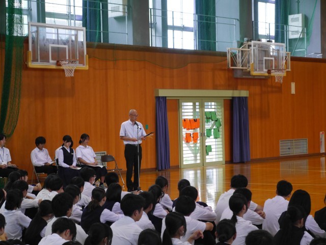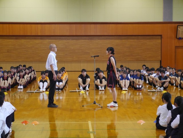 7日(火)新人大会壮行会④ 公開日 2025/10/07 更新日 2025/10/07 部活動 生徒会長および教頭先生から激励の言葉がありました。【写真1:生徒会長の言葉】【写真2:教頭先生の言葉】【写真3:選手宣誓】【写真4:吹奏楽部の演奏】 +1