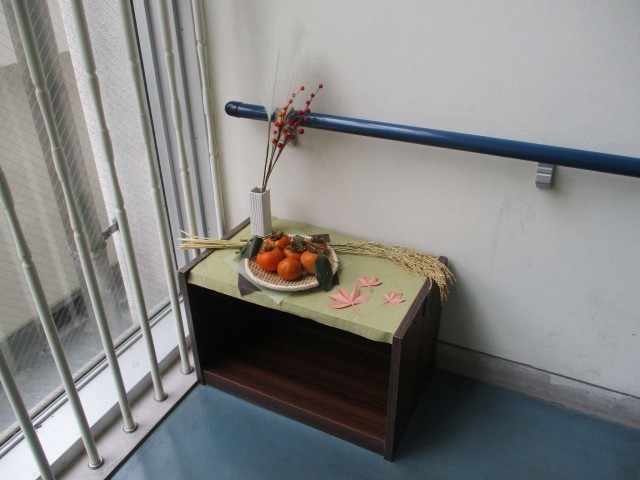 階段の踊り場に、助手さんがおいしそうな柿の実をステキに飾ってくださいました。
