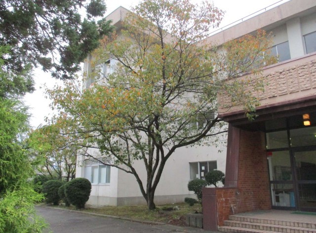 生徒玄関横の桜の葉も、秋らしく色づいてきました。