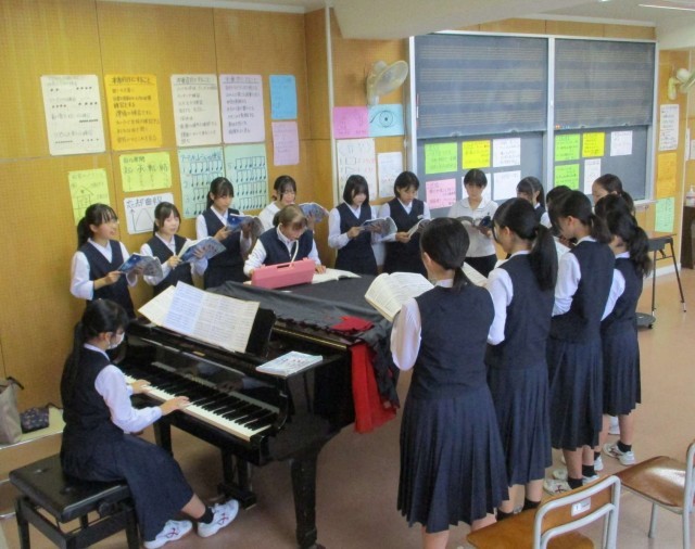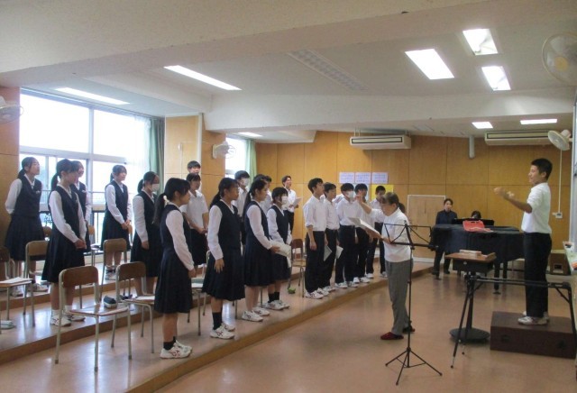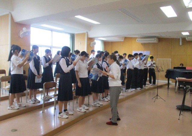 14日(火)3年生音楽 教育活動サポーターの先生の授業 公開日 2025/10/14 更新日 2025/10/18 3学年 3年生は、音楽の授業の時間に、教育活動サポーターの先生から合唱の指導を受けています。今日で、3回目のご指導になりました。ぐんぐん上達してきています。