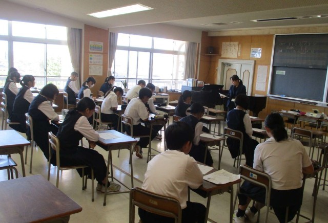 昼休みに、合唱コンクールの審査員になっている生徒たちは、音楽室に集合し、当日の審査のポイントや心構えなどを確認しました。