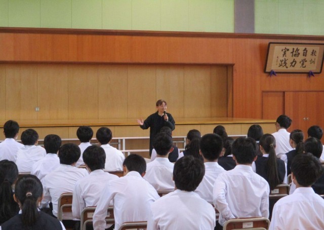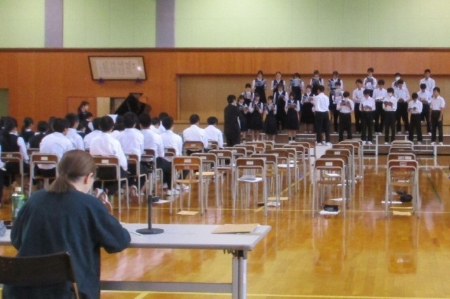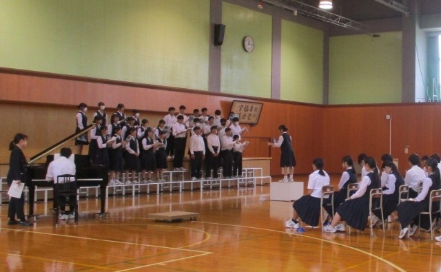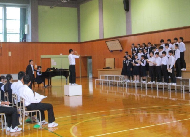 21日(火)3年生「合同音楽」 公開日 2025/10/21 更新日 2025/10/21 3学年 3年生は、4限に体育館で、3クラス合同で音楽の授業を行いました。合唱コンクールに向けて、教育活動サポーターの先生から合唱のご指導をしていただきました。 +1