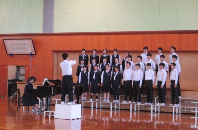 24日(金)合唱リハーサル【3学年】 公開日 2025/10/24 更新日 2025/10/25 3学年 3年生の合唱リハーサルの様子を紹介します。【写真上:31H】【写真中:32H】【写真下:33H】