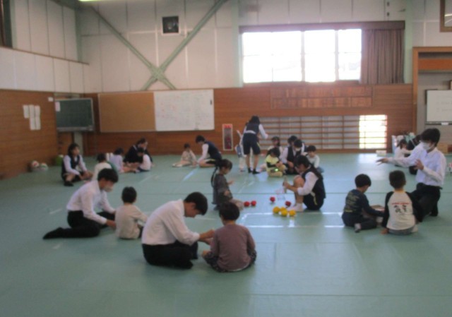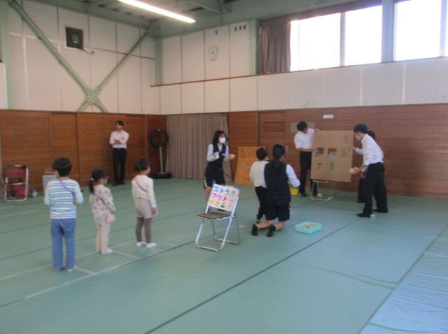 24日(金)家庭科 ふれあい体験【3学年】 公開日 2025/10/24 更新日 2025/10/25 3学年 3年生は、家庭科の授業で、石金こども園の園児の皆さんをお招きして行う「ふれあい体験活動」の準備を進めてきました。今日は、3年2組が「ふれあい体験活動」を行いました。一緒にダンスを踊った後、家庭科の授業で作った手作りおもちゃで一緒に遊んだり、迷路やおばけ屋敷、ゲームコーナーなど、体験できるブースをつくって、園児の皆さんに楽しんでもらいました。