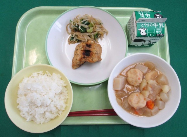 27日(月)今日の給食 公開日 2025/10/27 更新日 2025/10/27 東部中学校の様子 今日の献立は、「ごはん、牛乳、あじのえごま揚げ、チンゲンサイひたし、おでん」でした。「おでん」がおいしい季節になってきました。今日のおでんも、じゃがいもがほくほくで、具材にしっかりと出汁がしみていて、とてもおいしくいただきました。