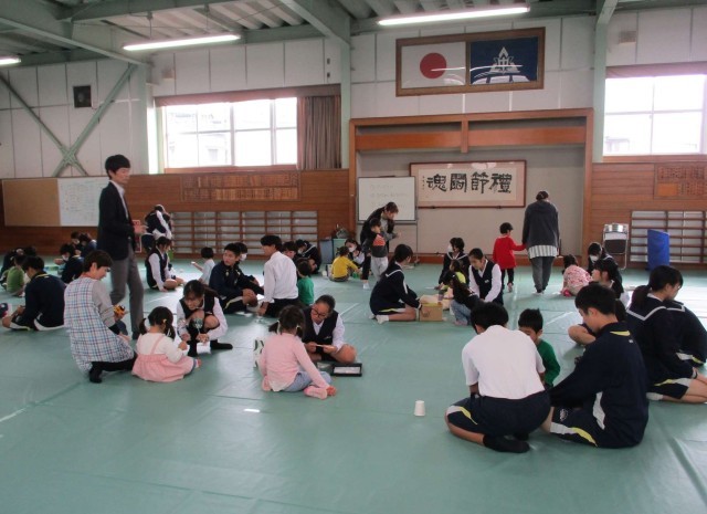 27日(月)家庭科 ふれあい体験【3学年】 公開日 2025/10/27 更新日 2025/10/27 3学年 3年生は、家庭科の授業で、石金こども園の園児の皆さんをお招きして行う「ふれあい体験活動」の準備を進めてきました。今日は、3年1組が「ふれあい体験活動」を行いました。一緒にダンスを踊った後、家庭科の授業で作った手作りおもちゃで一緒に遊んだり、迷路やおばけ屋敷、ゲームコーナーなど、体験できるブースをつくって、園児の皆さんに楽しんでもらいました。