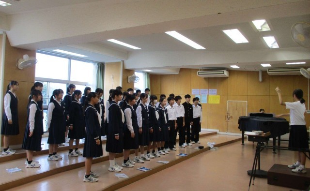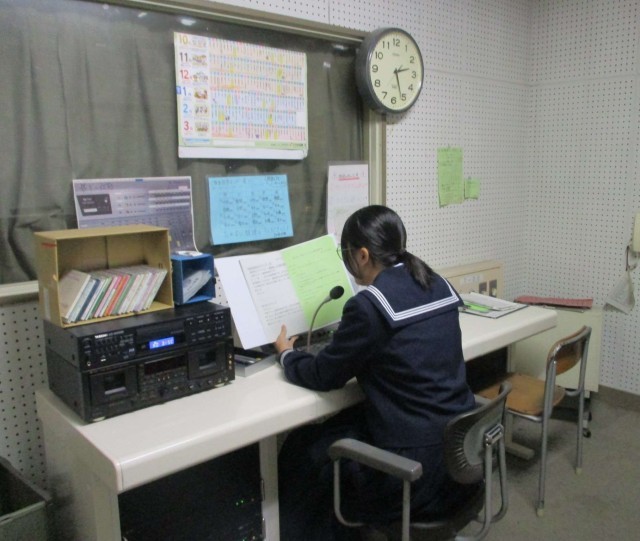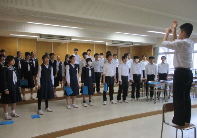 合唱コンクール運営委員が練習の開始と終了時に、放送で呼びかけています。