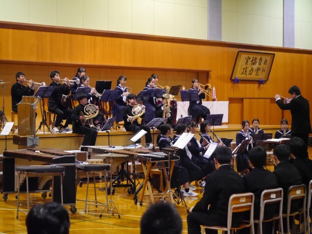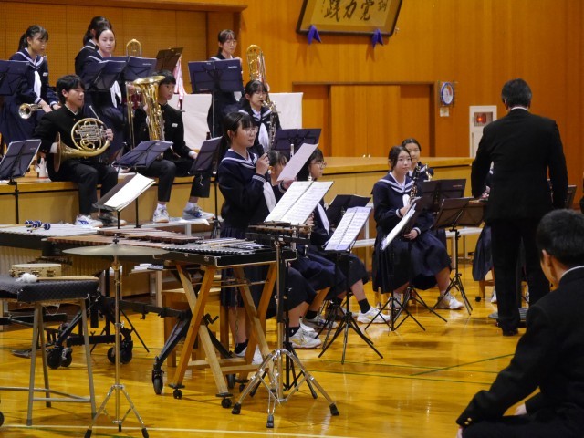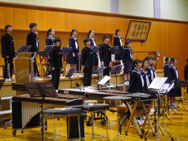 29日(水)合唱コンクール【吹奏楽部演奏】 公開日 2025/10/29 更新日 2025/10/29 東部中学校の様子 (演奏曲)・『アフリカン・シンフォニー』・『小組曲「パラドックスの箱」』(吹奏楽コンクール演奏曲)・『ロッキーのテーマ』・『追憶のテーマ』・『魔女の宅急便』・『花』・『花は咲く』(アンコール曲)・『負けないで』・『ステップ スキップ ノンストップ 順次進行によるカプリッチオ』(吹奏楽コンクール課題曲) +2
